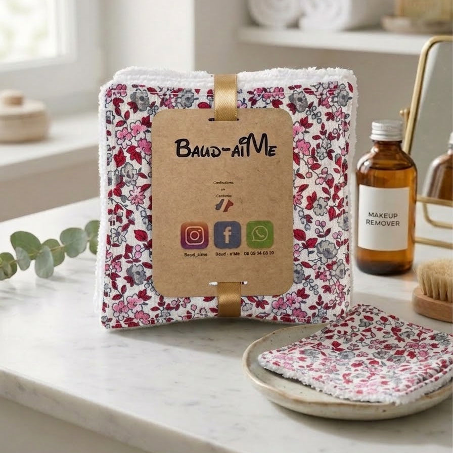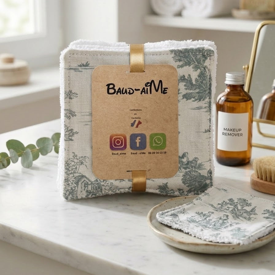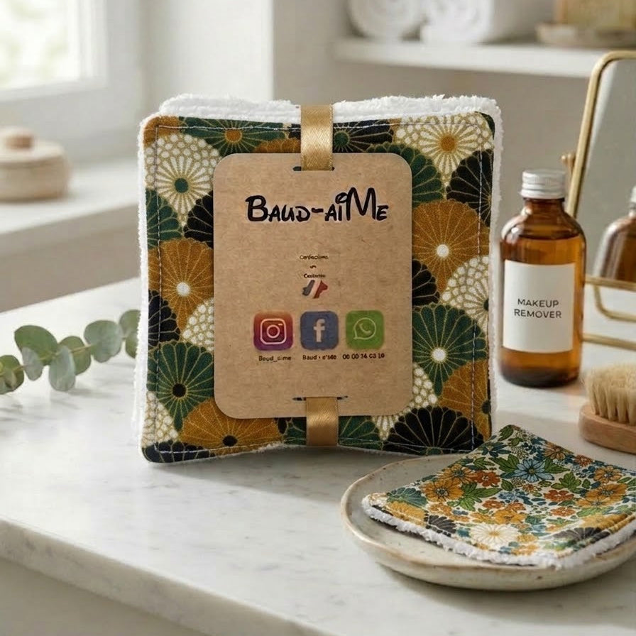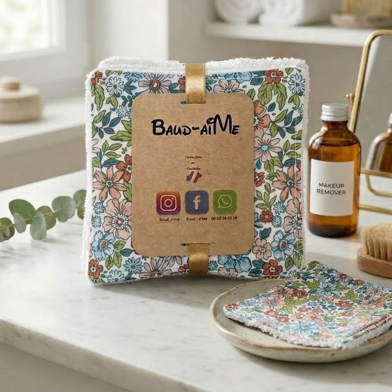 Dites adieu aux cotons jetables avec ce lot de 5 lingettes durables Baud-AiMe, fièrement confectionnées en Occitanie. Conçues pour prendre soin de votre peau et de la planète, elles apportent une touche de douceur artisanale à votre rituel beauté.